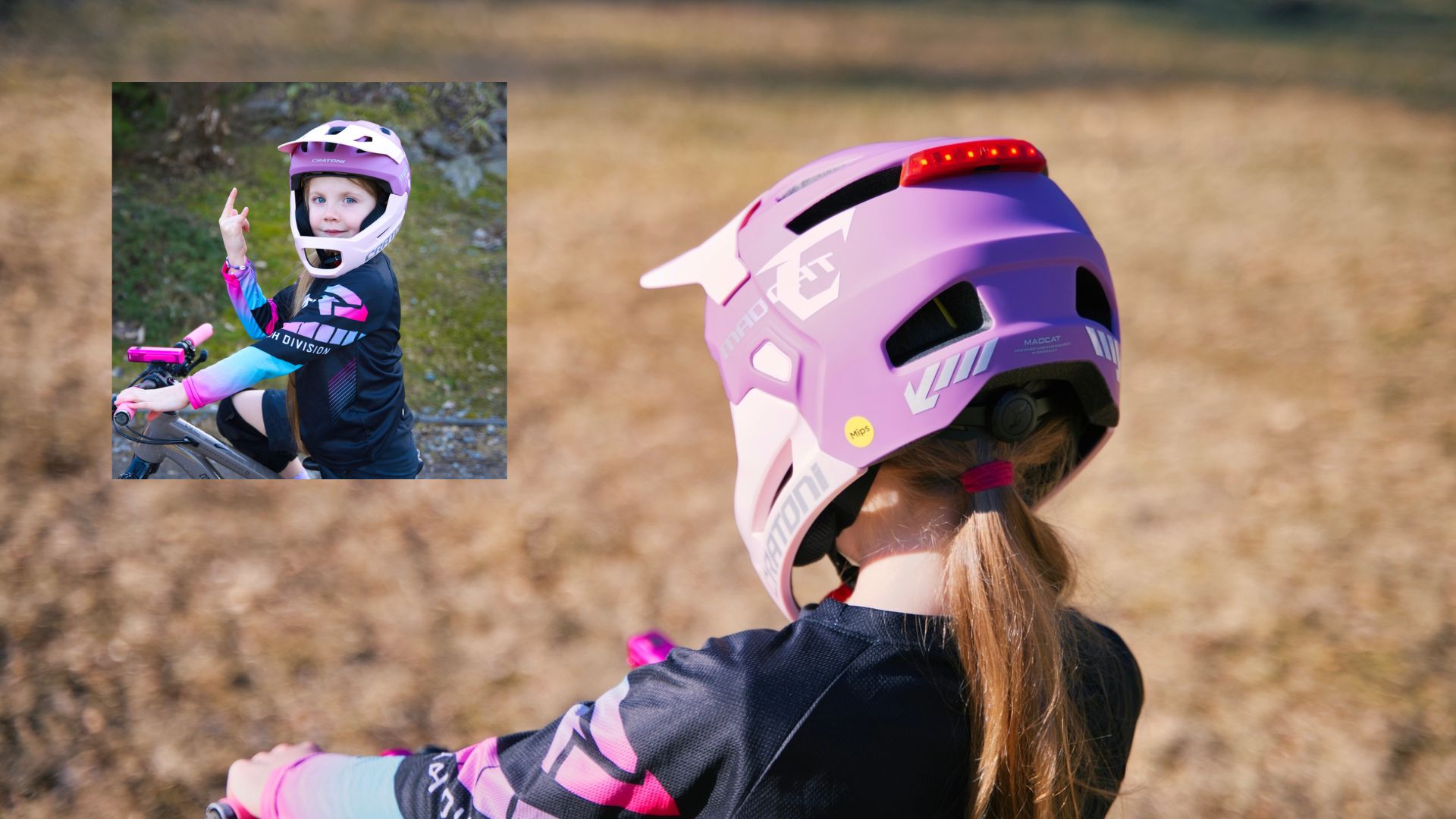 Madcat 2 je vybavena také integrovaným zadním světlem, které lze jednoduše dobít přes USB-C. Díky tomu je dítě lépe viditelné při jízdě za šera nebo ve městě. Samozřejmostí je 360° upínací systém s výškovým nastavením, který umožňuje přesné přizpůsobení různým tvarům hlavy.