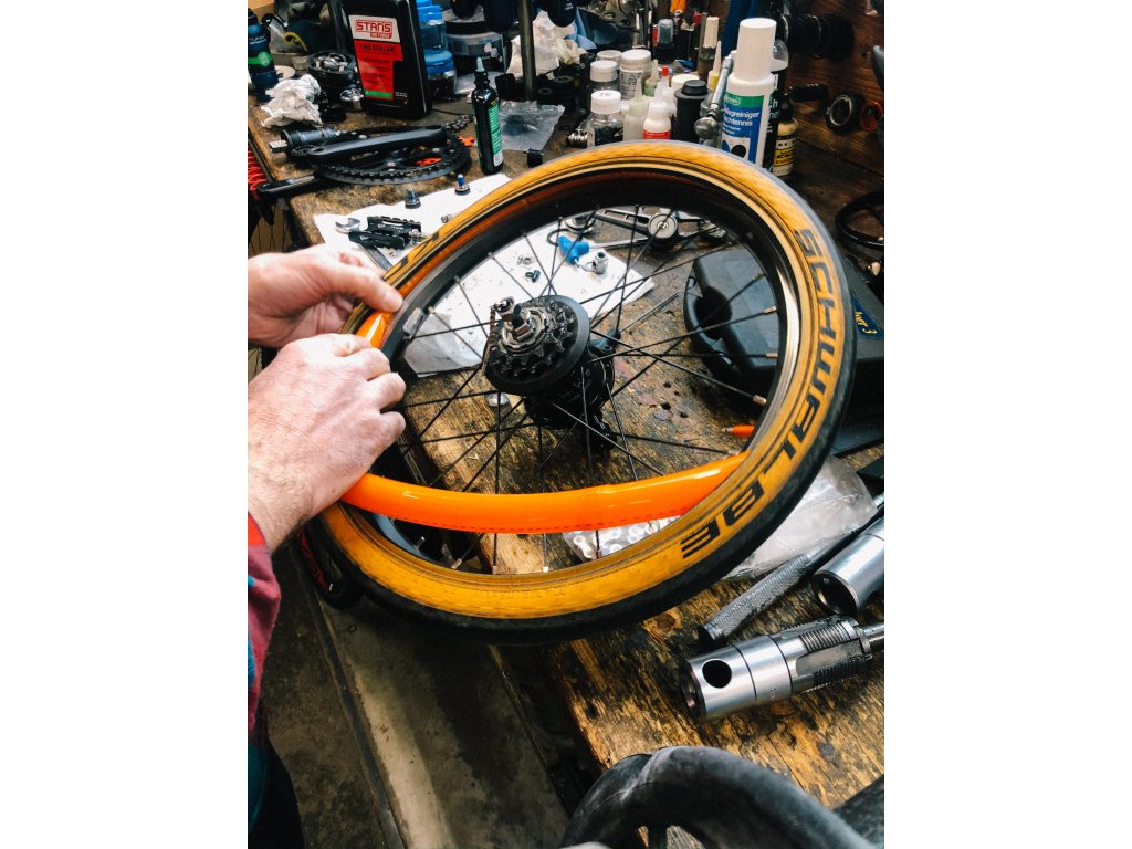 Instalaci do ráfku provádějte s Tubolitem nafouknutým na 0,2-0,5 baru. Nafouknutí na tuto hodnotu proveďte mimo ráfek a dbejte na to, aby ventilek směřoval dovnitř, aby nedocházelo k zbytečnému namáhaní materiálu
