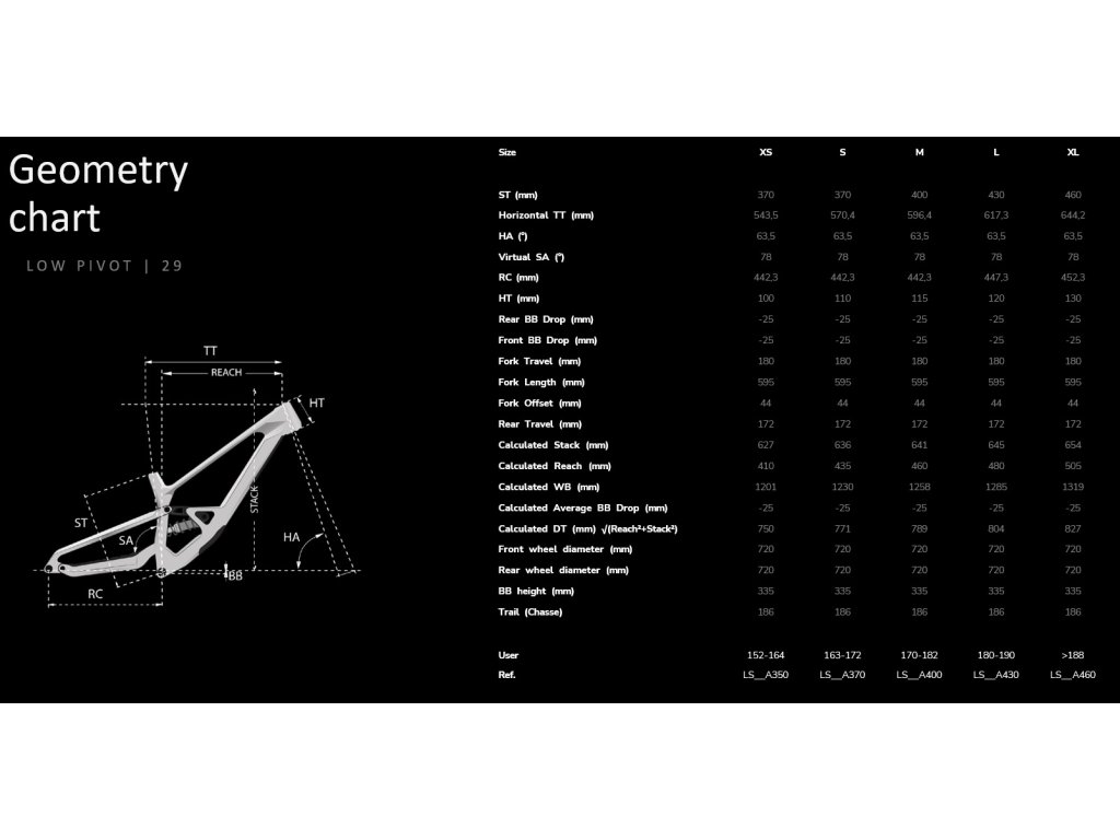 VÝŠKA BB (STŘEDU) – cílem bylo najít správnou rovnováhu mezi co nejnižší světlou výškou pro čistý výkon a potřebou enduro horského kola vyhnout se kontaktu se zemí při každém restartu, v závislosti na drsnosti terénu. Nakonec je jen 3 mm vyšší, ale kompenzuje extra zdvih.