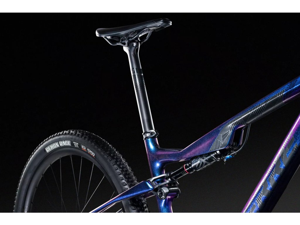 Flex Pivot – to je kinematika zadní stavby, kde absence čepu zadní stavby u osy zadního kola dovoluje nižší hmotnost rámu a nižší nároky na údržbu. O správný chod v kompresi se starají speciálně navržené, flexibilní, sedlové vzpěry. Širší řetězové vzpěry se pak postarají o tuhost a přesnost ve stoupáních. Sedlové vzpěry jsou navrženy tak, aby byly (bez zatížení jezdcem) pod mírným napětím, a dosáhly neutrální polohy při 26% sagu, bez ohledu na váhu jezdce. Tento systém vyžaduje pouze polovinu pohybu oproti podobným konstrukcím, což vede k hladké a efektivní jízdě. Umístění tlumiče pod horní rámovou trubku snižuje namáhání rámu a zároveň umožňuje montáž dvou košíků na láhve. Vysoko umístěný hlavní čep u středového složení eliminuje efekt „kick back“ během komprese. Odpružení tak neovlivňuje napětí řetězu při stlačení, což zajišťuje stabilní a efektivní platformu pro šlapání. Bonusem je teleskopická sedlovka se zdvihem 100 mm (S,M) / 125 mm (L,XL), která bude cenným pomocníkem při zdolávání technických a prudkých sjezdů.