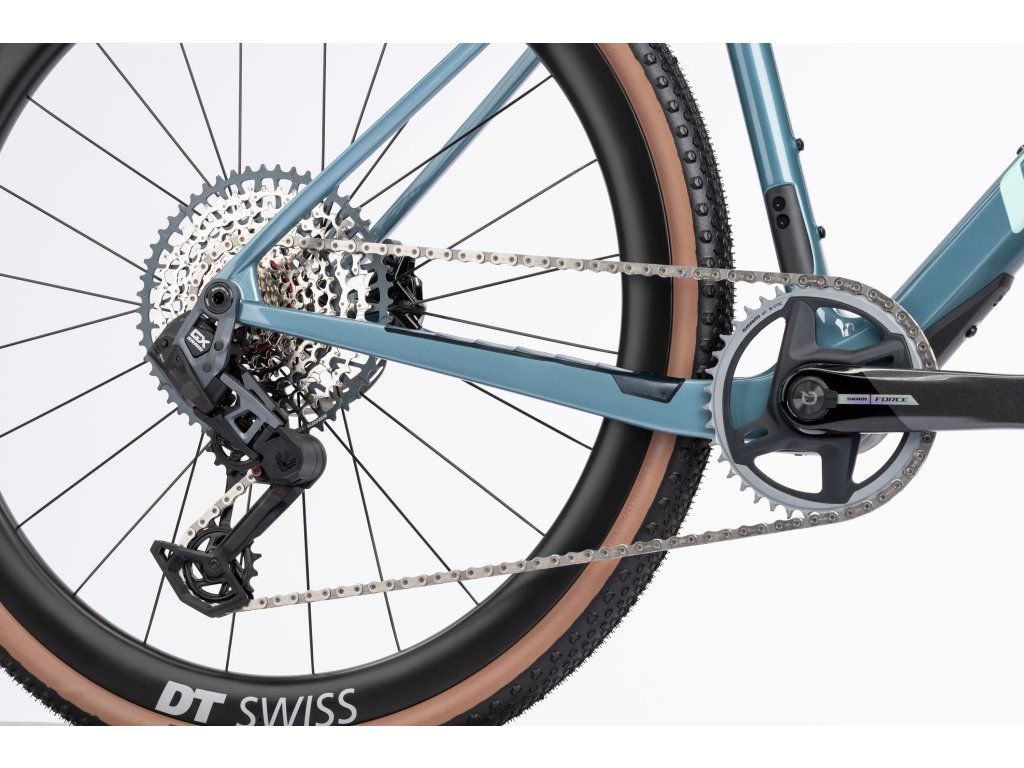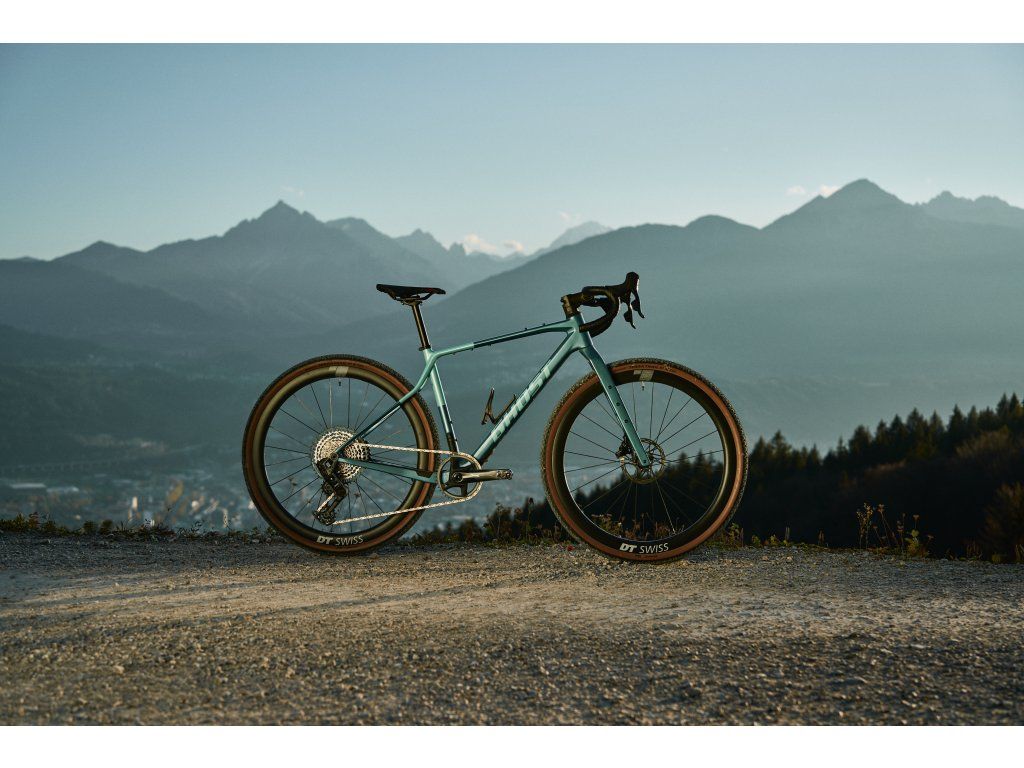 Asket CF LTD: Metalicky stříbrný rám je vybaven elektrickou sadou SRAM Force 1x12 a karbonovými koly DT Swiss GRC 1100 Dicut